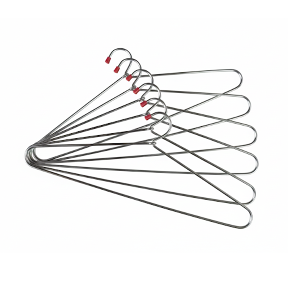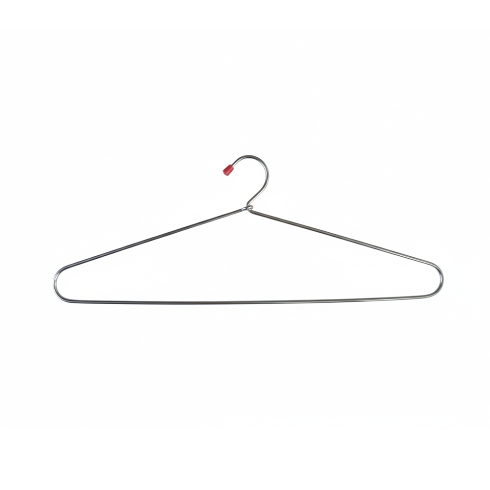Our heavy-duty stainless steel hangers are designed to be durable and efficient in all environments. With a unique elongated triangular shape, they maximize vertical space while easily supporting heavy garments. The attractive metallic finish resists rust for long-lasting performance in high-traffic environments, while the red protective hook tip provides safety and prevents snagging and wear and tear.